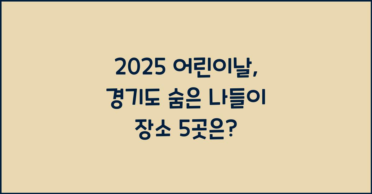 2025 어린이날이 다가옵니다. 많은 부모님과 어린이들이 특별한 순간을 보내고 싶어 할 겁니다. 경기도는 다양한 숨은 나들이 장소가 있어 가족과 함께 즐거운 시간을 보낼 수 있습니다. 이 글에서는 '2025 어린이날, 경기도 숨겨진 보석 같은 나들이 장소 Top 5'를 소개하여 가족의 즐거운 추억을 만들 수 있도록 도와드릴게요.